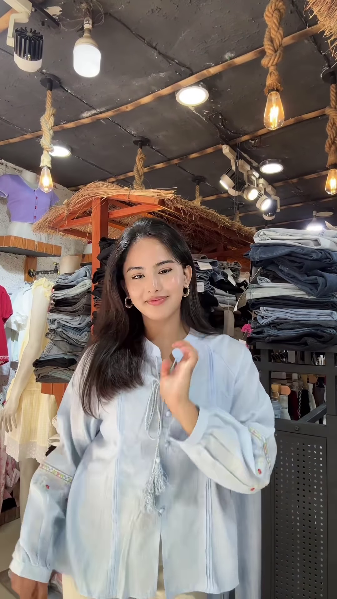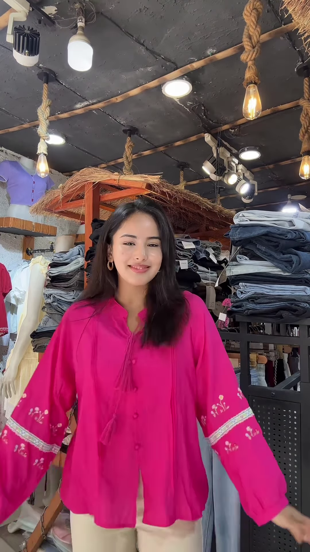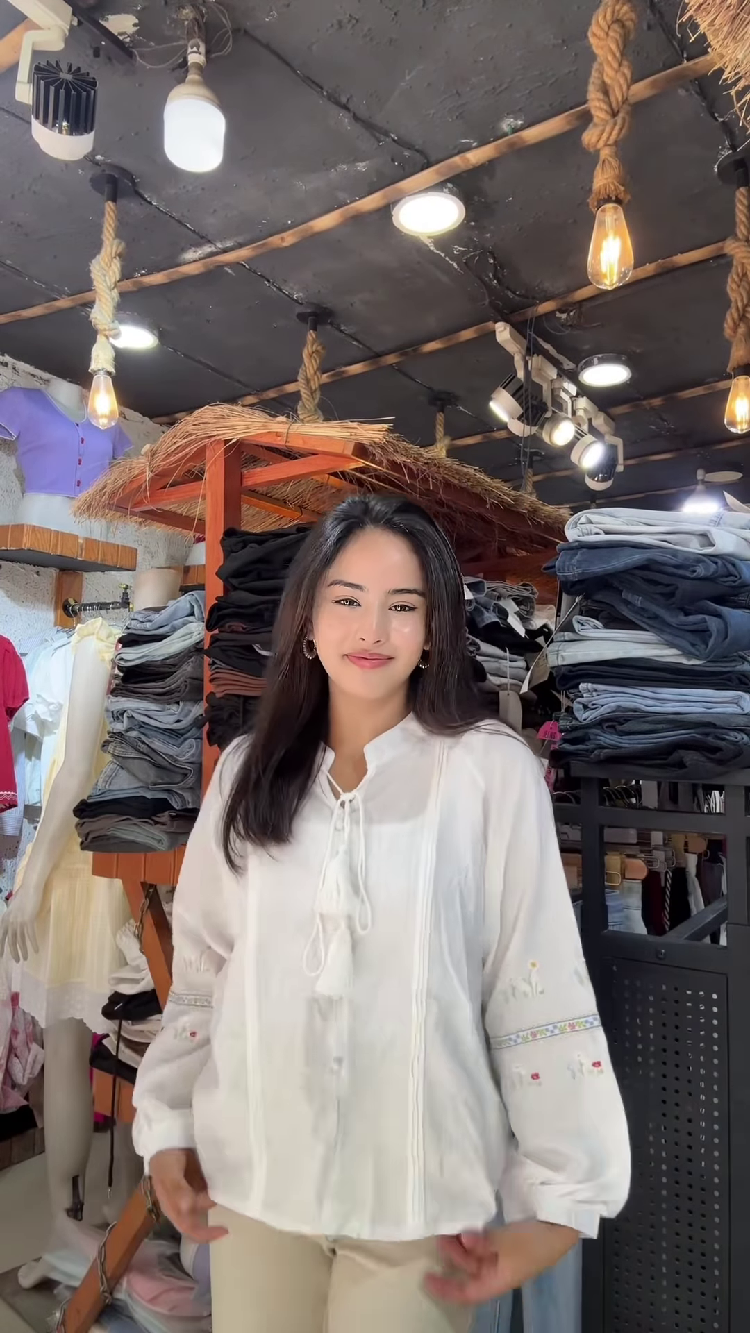 Elevate your everyday style with this light-colored embroidered blouse, designed for women who appreciate subtle detailing and relaxed elegance. Featuring tassel accents and delicate embroidery on the sleeves, this top blends boho charm with modern comfort—perfect for boutique displays, catalog shoots, or WhatsApp fashion campaigns.